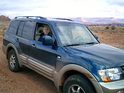 Eigentlich gehört sich für ein Urlaub in den USA unter echten Marlboro-Country-Bedingungen ein amerikanisches Pferd oder ein amerikanischer Wagen. Aber unter zehn Suzukis ist die Auswahl an "Amerikanern" eng und so stellt dieser Mitsubishi wahrscheinlich die bessere Alternative dar.