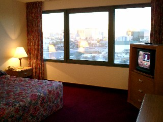 Gegen Mittag checken wir im Frontier ein. Wie immer eien schönes Suite, die so gar nichts hat mit den rustikalen (oder manchmal leider auch runtergekommenen) Motelzimmern oder den Zelten der beiden letzten Wochen. Und jetzt beginnen wir eifrig mit unserer Lieblingsbeschäftigung: Alle Taschen, alles Equipment und auch die letzte CD holen wir aus unserem Auto, tragen es in den 9. Stock des Frontiers und räumen anschließend alles wieder in neuer Kombination reisegerecht wieder in die Taschen. Nach einigen Stunden (hey, thats no joke!) haben wir das Gröbste geschafft und auch schon feststellen müssen, dass unsere neuen Schlafsäcke verdammt viel Platz brauchen! Das wiederum bedeutet, dass einige unsere Sachen doch hier bleiben werden. (Alter Schlafsack, Handtücher usw,) Jetzt gehen wir noch mal einwenig über den Strip und schauen mal, was sich so getan hat. Und vielleicht finden wir ja auch noch was zum Einkaufen, um die gerade gewonnenen Platzreserven auch wieder sinnvoll zu schließen.Was sein muss, muss sein. Außerdem lassen wir erstmalig von der Speicherkarte von Harrys Digital-Kamera ein Packet Bilder machen. Wir sind erstaunt über die gute Qualität, als wir nach einer Stunde unsere Bilder -wieder im Wal-Mart- abholen. |