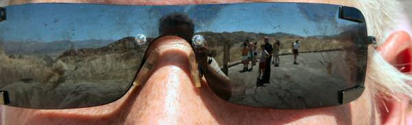 Um einen Akku ärmer und mit der Fragestellung im Kopf "Wo kriegt man denn hier einen Werkzeugkasten?" fahren wir weiter zum Zabriskie-Point um dort eine schöne Panorama-Aufnahme zu machen. Nach dem Shooting beobachten wir mit großem Interesse all jene Touristen, die offensichtlich erstmalig hier sind und nun emsig bestrebt sind, innerhalb kürzester Zeit möglichst viele Aussichtspunkte von Death Valley abzuklappern um möglichst viel von hier zu sehen. Wir bestätigen uns gegenseitig glücklich darüber zu sein, dass wir diese Phase der USA-Erkundung schon einige Jahre hinter uns haben, mittlerweile so viel von Death Valley gesehen zu haben, dass wir uns für weitere Ziele stressfrei Zeit lassen können. |