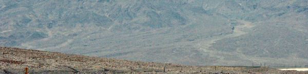 In Stovepipe Wells machen wir einen kurzen Zwischenstopp. Im Raum steht immer noch die Frage, ob wie evtl. eine Nacht in Stovepipe Wells im Motel übernachten wollen. (Material sortieren, Geräte aufladen und.......DUSCHEN!!!) Wir entscheiden uns für ein "JEIN". Wenn Stovepipe Wells einen Deluxe-Room frei hat, nehmen wir ihn. Ansonsten werden wir auch die letzte Nacht in Death Valley campen. Zu unserer Überraschung ist ein Raum frei, und sogar bei den von uns favorisierten "Roadrunners". Dies ist umso erstaunlicher, da wir vor einigen Wochen bereits von Deutschland aus per Internet vorbuchen wollten und damals keine Zimmer frei waren. Allerdings gibt es dennoch einen Wermutstropfen: Der Saloon hat diese Sommer wieder das eingeschränkte Menü-Angebt und somit kein Filet-Mignon. Gut, dass wir bereits eines selbst gegrillt haben. Es geht weiter zum Campground Wildrose, rund 30 Meilen noch von Stovepipe Wells entfernt. Unterwegs beobachten wir eine Joggerin, die bei den vorherrschenden 46-48Grad Celsium stramm bergauf (!) durch die Gegend läuft. Wir glauben kaum unseren Augen trauen zu können. Ich muss einfach anhalten und dies dokumentieren. Im Vorbeilaufen rufe ich ihr noch ein "Great" und "I like it !" zu, was sie aufmuntert und sicherlich motiviert. Mit Gewalt hält mich Anita jedoch davon ab sie hilfsbereit zu fragen, ob wir sie ein Stück mitnehmen sollen... |