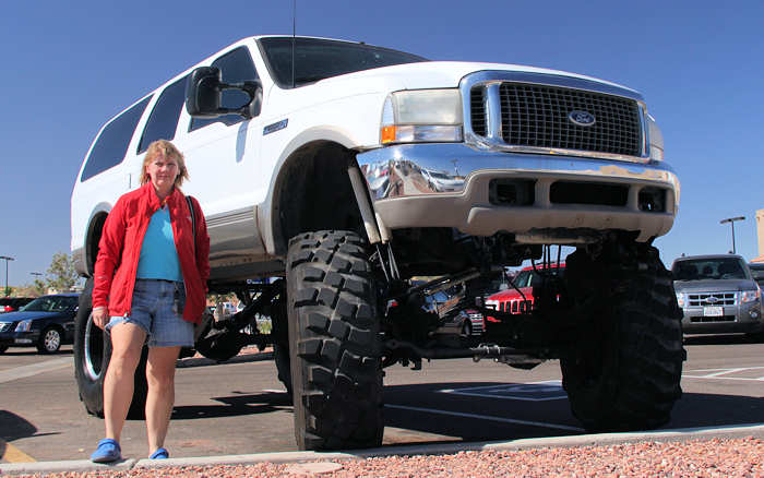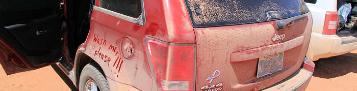 Es geht zurück in Richtung Vegas. Unterwegs halten wir in Hurricane bei Walmart um dort einiges „Gift“ als Mitbringsel einzukaufen. Wider erwarten bekommen wir einschließlich Jeans alles, so dass wir am zweiten Walmart in St.George vorbeifahren können. Stattdessen waschen wir unseren Wagen, nicht etwa aus falscher Eitelkeit sondern um uns beim späteren Entladen nicht völlig zu verschmutzen. | |