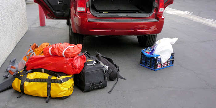 Und auch beim Vermieter klappt alles. Während es am Dollar-Schalter eine lange Schlange gibt, können wir mit unserer Karre direkt zum Dollar-Express-Schalter gehen. Diesmal sind auch alle Daten korrekt überspielt worden und so sitzen wie nach weiteren fünf Minuten im Auto. Diesmal haben wir die Auswahl aus drei SUV Jeep Grand Cherokee Chief. Die Autos sind diesmal sehr gepflegt und mit unter 5.000 Meilen auch noch recht neu. Leider fehlt Ihnen die Möglichkeit, den Allrad manuell zuzuschalten und auch die zusätzliche Untersetzung ist nicht vorhanden. Aber zumindest haben sie Allrad. Von hier aus geht es zum Storage um schon mal das Equipment aufzuladen. |