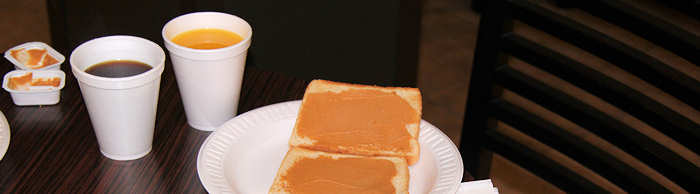 Zum unserem Erstaunen schlafen wir durch und werden von den Weckern wach. Nach der üblichen Zeremonie des Waschens sitzen wir um 6.15 Uhr beim „besten Frühstück der Welt“, das seit mehreren Besuchen sukzessiv weniger gut wird. Die Auswahl wird immer geringer. Wenn wir uns richtig erinnern fing es damit an, dass es den fürchterlichen aber guten Grapefruitsaft nicht mehr gab, dann verschwand der Frischkäse, den wir zusammen mit der Erdnussbutter auf die selbstgetoasteten Bagels geschmiert haben. Jetzt sind nicht nur die Bagels weg sondern auch der Toaster. Es gibt noch die Waffeln zum Selberbacken und beim nächsten Mal verschwindet vielleicht auch noch die Erdnusscreme. Aber egal: Es ist nunmal der Starter für unseren Urlaub und somit wird es auch mit spartanischer Ausstattung „unser bestes Frühstück der Welt bleiben“. |