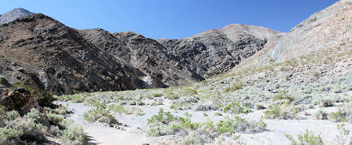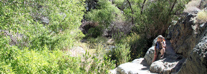 Als wir vorgestern aufgrund des Wetters die Route umgeplant haben und das Death Valley in Betracht zogen, fragte Anita noch kritisch, was wir denn hier machen wollen: In den letzten 19 Jahren waren wir sicherlich schon fast 30 mal im Death Valley und so glauben wir, nunmehr alles erwandert und kennen gelernt zu haben, was es hier gibt. Doch allein die Zeitung der Ranger offenbart uns mindestens drei Touren, die wir noch nicht gemacht haben. Es gibt also noch genügend Futter für weitere Besuche und heute steht als erstes der Darwin Fall an. Nach nur eine Meile Marsch sollen wir an einen Wasserfall gelangen, der ganzjährig fließt, teilweise überwuchert ist und eine interessante Tour sein soll. Wir sind einmal gespannt. |