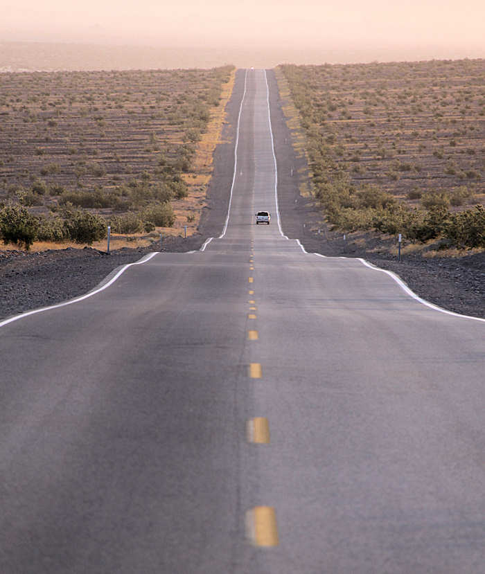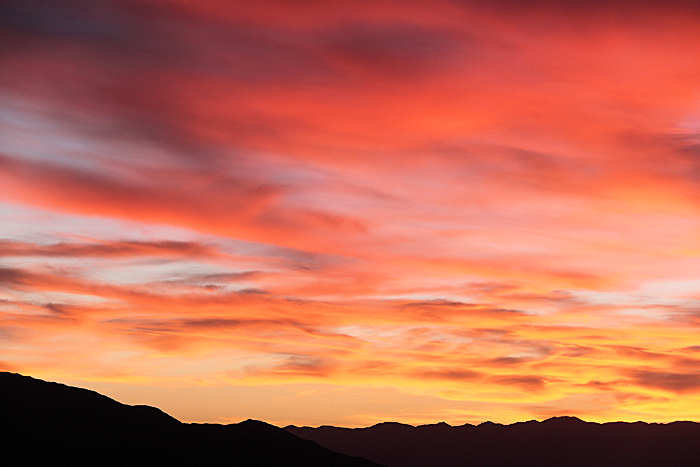 Die Strecke von Furnace Creek und Stovepipe Wells wird durch mehrere Stopps unterbrochen, weil uns der Abendhimmel zu vielen Fotos ermuntert. | |