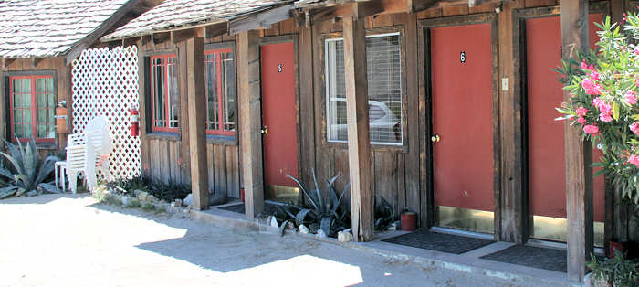 Am Auto gibt es einen kurzen Snack und gleich darauf sitzen wir wieder im Auto. In Panamint halten wir kurz am dortigen Motel für ein paar Aufnahmen. Denn hier wurde das Roadmovie „Death Valley“ vor einigen Jahren gedreht. Bereits im letzten Jahr habe ich dort Aufnahmen für unsere Diashow gemacht und zufällig genau vor der Moteltür, durch die der Sheriff herauskommt. (Zimmer Nr. 6, bzw. 7) Nunmehr muss ich sie nochmals fotografieren und nun auch genau in dem Winkel, wie in dem Film. |