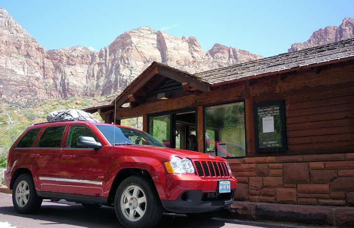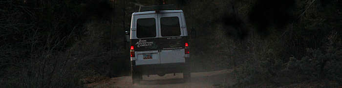 Vom Visitor Center aus verlassen wir den Park und fahren mit dem nächsten Shuttle bis zu unserem Adventure Outfitter um unser Auto abzuholen. | |