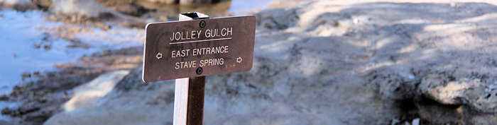 Nach einer guten halben Stunde haben wir Betriebstemperatur und können uns von den ersten Kleidungsschichten trennen. Eine erste kurze Rast machen wir am Jolly Gulch, wo sich zu unserem Erstaunen erstmalig ein kleiner Wasserfall gebildet hat. Die kurze Pause bietet sich für ein Shooting an. | |