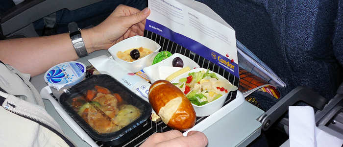 Der Sicherheitsbeamte ist recht erstaunt, als ich ihm auf seine Frage „Sie haben auch kein Laptop?“ ein „Doch!“ erwiderte. Auf seine Frage hin „Ja, wo denn?“ hole ich das kleine Netbook aus meiner kleinen Tasche. Er sieht sich das Ding recht überrascht und genau an. Von diesem Anekdötchen einmal abgesehen verläuft alles andere routinemäßig. Mit knapp einer Stunde Verspätung heben wir von Frankfurt ab. Die Verspätung liegt daran, dass ein Fluggast seinen Flug nicht angetreten ist und das bereits eingepackte Gepäck wieder ausgeladen werden muss. Von diesem Fluggast einmal abgesehen scheinen wohl alle anderen da zu sein. Meine gestrige naive Hoffnung, vielleicht eine ganze Bank für uns zu haben, wird von der Realität eingeholt: Die Maschine ist ausgebucht. Außer der Tatsache, dass ich im Gegensatz zu sonst, diesmal fast gar nicht schlafen kann, ist noch unser Essen erwähnenswert: Wir haben diesmal ein Special-Menü online bestellt. |