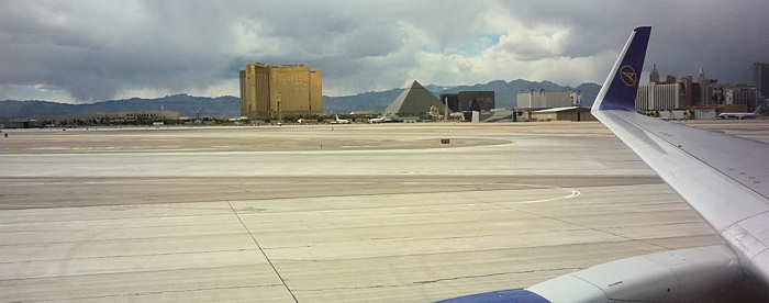 Daraus ergibt sich für mich folgende Logik: Potenzielle Terroristen fliegen demnach nicht in Comfort-Economy oder höher oder essen nur Standardgerichte ;-) Um 14.45 Uhr landen wir in Vegas. |