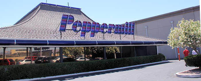 Der heutige Tag kann in wenigen Sätzen beschrieben werden, vergeht er doch leider wie im Flug: Um sechs Uhr stehen wir auf, fahren zum Walmart um noch Mitbringsel zu besorgen und zum Home Office um was für mein Büro zu erstehen. Unser Frühstück nehmen wir beim „Peppermill“ ein, ein Restaurant mit Bar, das eine tragende Rolle in dem Film „Showgirls“ eingenommen hat. Obwohl wir bereits durch unseren Besuch beim letzten Mal vorgewarnt waren, fallen wir wieder darauf ein und werden von orgiastisch großen Portionen überfallen. Es schmeckt vorzüglich, die Preise sind insgesamt o.k. aber die Mengen zu groß. |