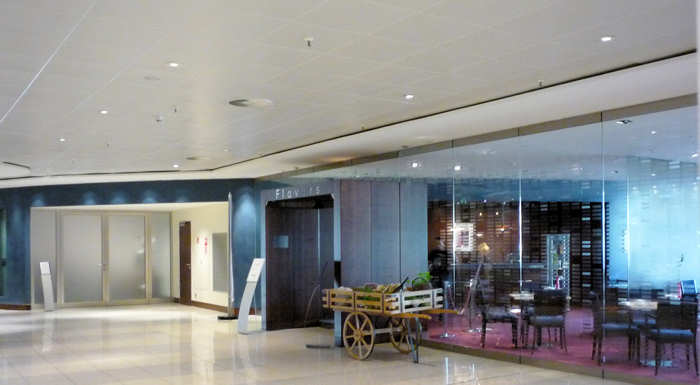 Außer der Tatsache, dass man uns fast vergessen hätte, ist das Essen in der Tat gut und hübsch dekoriert. Es ist identisch mit dem Essen der Comfort-Economy-Class. Ich habe gehört, nach den Anschlägen vom 11.September wurde das Essen in Flügen über Amerika grundsätzlich auf Plastikbesteck umgestellt. Jetzt aber haben wir ordentliches Metall-Besteck. |