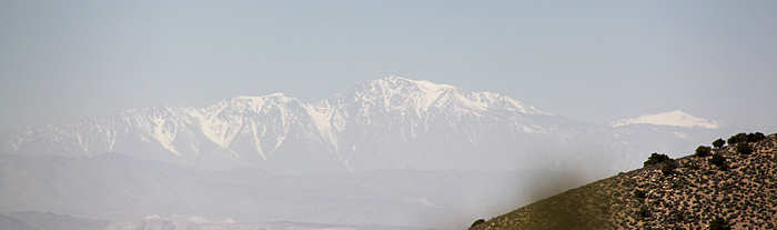 Der starke Wind macht die Luft wohl besonders klar: Wir können von hier aus sogar die etwa 150 Kilometer entfernten Berge der Sierra Nevada erkennen. | |