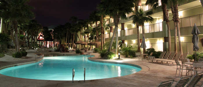 Nach gut 1,5 Stunden ist alles verpackt, gesäubert und dekontaminiert. Nun geht es in unseren Waschsalon, wo wir vier Maschinen parallel anschmeißen. Während unsere Wäsche so vor sich hin wäscht besuchen wir den 99c-Laden in der Nachbarschaft. Fast alle Artikel kosten hier lediglich 99Cent. Ganz originell aber gefunden haben wir kaum etwas. Mit der gewaschenen und getrockneten Wäsche fahren wir ins Hotel, dem Tahiti All-Suite Resort. Wir sind gespannt auf das Motel, denn es ist für uns eine Premiere; Es ist liegt an der West Tropicana Ave .und ist damit ein ruhiges Off-Strip-Hotel. Das Einchecken ist sachlich freundlich und geht schnell. Innerhalb weniger Sekunden erklärt uns die Mitarbeiterin alles, was wir wissen müssen: wie wir zum Zimmer kommen, wann es was wo gibt usw.