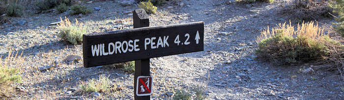 Nachdem wir die Rucksäcke bereits gestern gepackt haben, heißt es nun mehr, sie nur noch aufzusetzen und loszugehen. Unser Ziel ist der Wildrose Peak, der auf einer Höhe von 2763 Metern einen guten Blick in das Death Valley bieten soll. Er ist nicht der höchste Berg im Death Valley. Das ist der Telescope Peak, den wir vor sieben Jahren erstürmt haben. Heute heißt es auf einer Länge von 4,2 Meilen (ca. 7 km) 750 Höhenmeter zu erklimmen. |