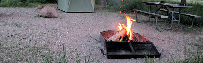 Vom Visitor Center aus verlassen wir den Park und fahren mit dem nächsten Shuttle bis zu unserem Adventure Outfitter um unser Auto abzuholen. Die erste Fahrt geht zum Supermarkt um Grillgut einzukaufen. Doch alles Fleisch dort macht uns nicht an und wir entscheiden uns spontan für Resteessen. Unsere Kühlbox bietet noch ein paar Tomaten, einen Joghurt und Brötchen. Aber auf das Lagerfeuer verzichten wir nicht und genießen noch den Abend. |