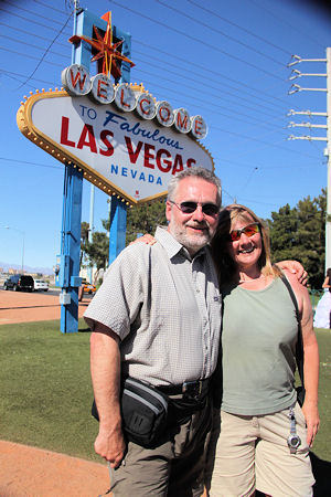 Freitag 20.April 2012: Der heutige Tag steht im Schatten des Shoppings, wenn auch nicht übermäßig erfolgreich. Das Hotel-Frühstück (Tasse Kaffee und ein Bagle) nehmen wir auf unserem Balkon ein, ein Feature, das wir genießen. Danach geht es zum Storage um schon mal die ersten gewaschenen Klamotten und das gereinigte Equipment zu verstauen. Dabei packen wir auch schon Anitas Rucksack, trotz der Flüche und Schwüre........aber das hatten wir ja schon. Danach geht es zum R.E.I. in Las Vegas, dem Outdoor-Ausstatter. Diesmal geht es nicht um ein Zelt sondern um Kleidung. Bei der Gelegenheit suchen wir auch beim Office Max nach einer Tastatur für mein Tablet (damit sich beim nächsten Reisebericht nicht so viele Tippfehler einschleichen). Die nächste Station ist das „Welcome Las Vegas-Schild“, zu dem wir an diesen beiden Tagen wegen einigen Fotos sicherlich noch mehrere Male hinfahren werden. Doch hoffentlich verlaufen unsere kommenden Besuche ruhiger: Hier ist der Bär wegen Filmaufnahmen los. Es gibt keinen freien Parkplatz und daher schmeißt mich Anita am Schild raus, und fährt netterweise einige Male drumherum währen ich fotografiere. Danach geht es zum Walmart und dann zu unserem Pool, schon wieder Urlaub machen. Der entwickelt sich heute jedoch anders als erwartet: Die schön gestaltete Pool-Anlge vom Tahiti haben wir stets als eine Oase der Ruhe erlebt. Manchmal waren wir alleine an der großzügigen Anlege, manchmal mussten wir sie doch mit zwei bis fünf anderen teilen. Doch heute ist der „Flodder-Clan“ vor Ort. (Wer die Familie Flodder aus der niederländischen Filmreihe kennt, weiß, was ich meine). Dieser etwa 15 köpfige amerikanische Clan, der sämtliche Generationen von Baby bis Greis umfasst, grölt und vertreibt dabei eine Reihe von Gästen aus der Poolanlage. Außer uns, zumindest für den Moment. Wir sitzen - fast schon traditionsgemäß - auf unseren beiden Liegen im Schatten einer Palme. Die für uns schönsten Plätze an der Poolanlage haben wir bisher stets frei vorgefunden. Dabei steht hier gar kein Schild „Reserved for Anita & Hartmuth“. Die Flodders hingegen sitzen sich nur ein bis zwei Meter von einander entfernt gegenüber aber schreien sich an. Der Alkohol dämmt offensichtlich stark das Hörorgan. Überhaupt sind wir erstaunt, dass das Trinken von Alkohol auf er Anlage toleriert wird. Wie viel Alkohol am Pool vernichtet wird sehen wir dann, als die Flodders ihren Trakt aufräumen. Einer von ihnen geht gleich mehrmals zum Mülleimer, die Arme voll mit „Bud light“-Dosen. Die Flodders schaffen aber auch uns und nah gut ein bis zwei Stunden machen wir uns wieder auf den Strip zum „Welcome-Schild“. Nach einem weiteren ausführlichen Shooting (das Ergebnis wird man später einmal in unserer Show sehen)