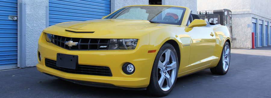 Wer bei der Immigration vorne in der Reihe stehen will, muss im Flugzeug vorne sitzen. Dieses von uns entwickelte Fluggrundgesetz geht auf und mit unserer Sitzreihe 15 stehen wir bei der Immigration ziemlich weit vorne. Nach nur wenigen Minuten sind wir an der Reihe und begeben uns zu einem recht streng schauenden Einreisebeamten. So oft wir auch schon in die USA immigriert sind, bis heute noch sind wir uns unsicher, wie man Ihnen gegenüber am sinnvollsten auftritt, außer natürlich stets respektvoll. Mal sind die Beamten locker, mal streng, mal unnahbar. Doch der heutige entpuppt sich nach nur ein oder zwei Sätzen als völlig anders als sein strenger Blick vermuten lässt. Kaum erwähnen wir aufgrund seiner Frage, nach dem Grund unserer Einreise, dass wir Urlaub machen und Hiken wollen, werden seine Augen riesig und er erkundigt sich nach unserem Vorhaben. Stolz berichtet er, dass er in 21 Tagen den John Muir Trail (über 200 Meilen) erlaufen ist. Ich soll glücklich sein, sagt er, dass ich eine Frau habe, die diese Leidenschaft teilt. Seine Frau kann er fürs Wandern erst begeistern, wenn es Rucksäcke von Louis Vuitton gibt. Die Immigration verläuft somit in sehr angenehmer Atmosphäre und dass sie aufgrund unserer Erzählungen etwas länger dauert, nehmen wir gerne in Kauf. Zweites Grundgesetz: Egal, ob du bei der Immigration vorne oder hinten stehst : Vor dem Gepäckband sind alle Reisenden gleich. . . So warten wir etwa 15 Minuten bin unsere beiden "süßen" Taschen uns entgegen rollen. Beim Zoll werden wir einfach durchgewunken, der Shuttle kommt nach wenigen Minuten um uns zur Autovermietung zu bringen und beim Hertz-Schalter kommen wir schnell dran. Bisher läuft alles optimal, so dass wir schon Bedenken haben, was denn diesmal daneben geht. Denn das dritte Reisegrundgesetz heißt. Wenn alles im Urlaub gutzugehen scheint wird die Überraschung, was noch alles daneben geht, umso größer sein. Und es scheint sich schon abzuzeichnen. Der Hertz-Mitarbeiter erkundigt sich, ob wir wirklich ein Cabrio vorbestellt hatten, dann erkundigt er sich per Funk, ob irgendwo ein Cabrio zu Verfügung steht. Ich richte mich schon gedanklich auf eine Diskussion ein, doch dann erfolgt die Entwarnung, dass soeben ein Cabrio reingekommen ist. Wir haben eigentlich Hertz als Vermieter genommen, weil die einen Mustang als Cabrio haben und der von den Cabrios mit den größten Kofferraum hat. Dass man aber immer den Wagen bekommt, den man haben möchte, das haben wir uns schon abgeschminkt. Ich frage auch gar nicht nach der Marke und bin nur froh, dass wir überhaupt ein Cabrio in Aussicht haben. Der Wagen soll auf Platz 108 stehen. Uns was da auf uns wartet, lässt uns blass werden. Anita eher wegen der dezenten Farbe des Wagens, ich wegen des Wagen selbst. Auf der 108 steht ein knallgelbes Camaro-Cabrio. Von der Farbe einmal abgesehen - mir kommt über die Lippen, dass nur noch das schwarze Posthorn fehlt - der absolute Monsterschlitten. Ich bin ja nun wirklich kein großer Autofan und mich interessiert bei der Wagenübernahme nur, ob der Wagen läuft und genug Platz hat, aber bei diesem Wagen und Hertz fängt das eigene Herz doch an schneller zu schlagen. Nicht umsonst gehört er beim Vermieter zur sog. Adrenaline-Line, wie seit einiger Zeit diese Klasse beworben wird.