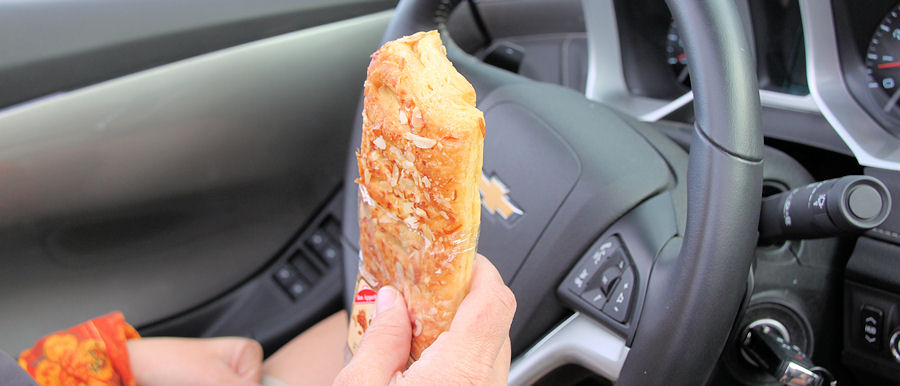 Freitag, 6.4.2012: Es geht wieder zum Walmart, weil wir noch Schmerztabletten vergessen hatten. Um 5Uhr einkaufen zu gehen ist schon ein seltsames Gefühl. Wir sind zwar nicht die einzigen Kunden, dennoch übersteigt die Anzahl der Verkäufer die der Kunden. Pünktlich um 6Uhr sind wir beim besten Frühstück der Welt und erstaunlicherweise bei weitem nicht die ersten. Nach der kulinarischen Sause geht es zum Auschecken und anschließend nochmals zum Storage um die nichtbenötigten Dinge zu verstauen. Wir stehen um Viertel vor Sieben schon vor dem Gatter, wohl wissend dass es sich erst um 7Uhr öffnen lässt, aber wir sind nun mal einfach so schnell fertig gewesen. Doch welch ein Wunder, das Tor öffnet sich. Nicht etwa von Geisterhand sondern durch die Hand die Hostes, der schon im Dienst ist und Mitleid mit uns hat. Noch vor Sieben verlassen wir schon wieder das Gelände und sind begeistert, wie wir unseren Plunder im Postauto verstaut haben. Der Kofferraum hat viel Platz, weil er eine große Reserveradmulde aufweist, und die ist leer. Stattdessen ist dort mittig die Batterie untergebracht. Ich mag nicht daran denken, dass wir einen Platten haben und uns dann das rettende Reserverad fehlen wird.