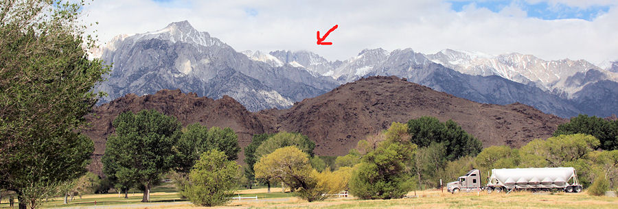Wir beabsichtigen nach Alabama Hills zu fahren, um uns dort auf die Suche nach Arches oder aber noch einmal auf die Spuren berühmter Filme zu machen. Denn Alabama Hills war und ist das Eldorado der Filmschaffenden und Westernfans. Vor zwei Jahren waren wir schon dort und jetzt geht es noch einmal dort hin. Auf dem 80 Meilen langen Weg dorthin kommen wir auch am Father Crowley-Point vorbei. Es ist ein Aussichtspunkt, der einen Blick in einen Canyon ermöglicht und zweimal durften wir erleben, wie Tornados oder andere Kampfjäger der amerikanischen Luftwaffe unten durch den Canyon fliegen. Die Besonderheit ist, das man selbst über den Kampfjets steht und sieht, wie die Maschinen im letzten Moment aus dem Canyon heraus nach oben ziehen. Erst in dieser unmittelbaren Nähe zum Jet kann man realistisch erfahren, mit welcher Geschwindigkeit die Maschinen fliegen. Doch heute ist es ruhig und kein Manöver deutet sich an. Vermutlich kann man – wenn man Pech hat - Stunden oder Tage dort verbringen, bis endlich ein Jet vorüberfliegt. Dass wir gleich zweimal Zeuge eines solchen Übungsfluges werden durften ist vermutlich riesiges Glück. In Lone Pine, das zugleich das Gate zum Mount Whitney ist,
