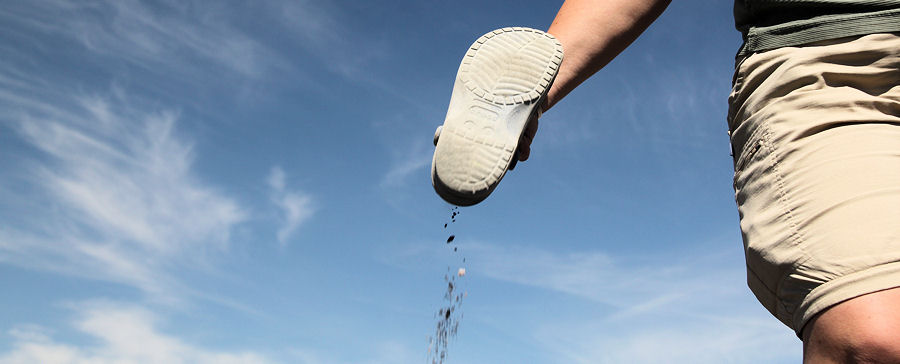 Die Sonne scheint auf den Trail und unter dem Gewicht unserer schweren Backpacks heizen sich unsere Körper dermaßen auf, dass wir uns schon mal von zwei Schichten an Bekleidung trennen.