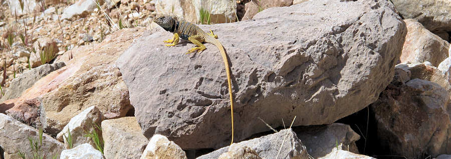 Wir steigen aus dem Creek aus und klettern mühselig die hohen Felsstufen hoch, da passiert es erneut. Ein lautes Klappern lässt mich augenblicklich aufhorchen und stoppen. Vor mir sehe ich nur noch die Rassel einer Klapperschlange, die sich langsam in einer Felsspalte verkriecht.