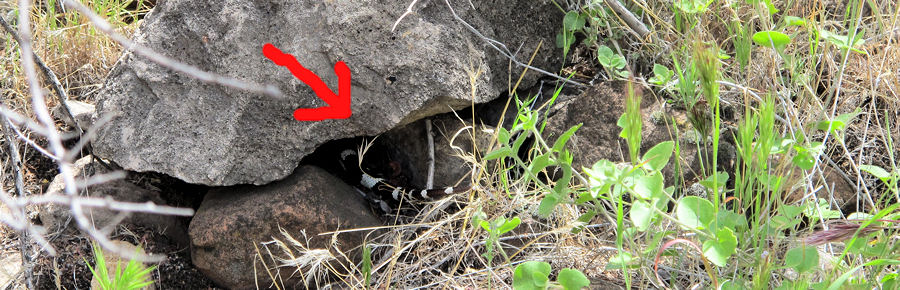 (Hinweis: Uns ist klar, dass man auf dem Bild so gut wie nichts von der Klapperschlange erkennen kann. Aber glaubt mir: Sie ist drauf. Eine entsprechende Vergrößerung zeigt es. Ich habe mich bei der Aufnahme mit meiner Kamera mit gemäßigtem Telebereich beim besten Willen und höchster Motivation nicht getraut, näher ran zu gehen. Hätte ich es getan, würde der Reisebericht an dieser Stelle vermutlich enden...)