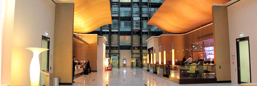 Müssten wir diesmal nicht ein Zelt als Ersatz für unser im letzten Urlaub zerstörten Zelt mitnehmen, könnten wir wieder nur mit Handgepäck fliegen. Aber das haben wir uns für den Herbst vorgenommen. Einige Minuten später checken wir im Hotel ein. Diesmal nicht im Sheraton sondern in dem nagelneuen, erst vier Wochen alten Hilton. Die Architektur ist futuristisch und atemberaubend.