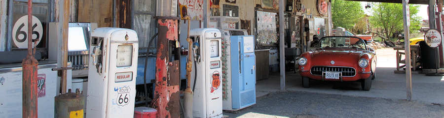 Weiter geht es in Gegenrichtung wieder zurück auf den Highway, auf die Umgehungsstraße und dann über Kingman nach Hackberry, jene Tankstelle. die ausschaut. als sei hier die Zeit in den 50ern stehen geblieben. Wir bleiben selbstverständlich hier auch einige Zeit stehen, obwohl wir schon einige Male hier angehalten haben. Ich bilde.mir nun mal ein, dass es immer noch Winkel und Ecken gibt, die ich noch nicht fotografisch festgehalten habe.