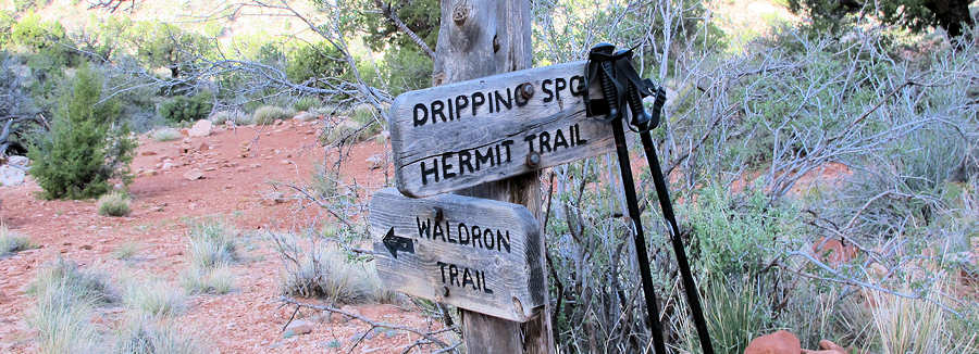 Zum Glück ist es schon hell, sodass wir die Hindernisse gut erkennen können. Der erste markante Wegpunkt ist die Abzweigung zu Dripping Spring. die wir nach 1,6Meilen erreichen.