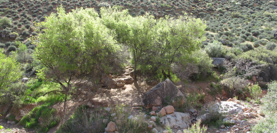 Nach einem kurzen aber sehr steilen Abstieg sind wir direkt am Creek, der im weiteren Verlauf in den Colorado führt.