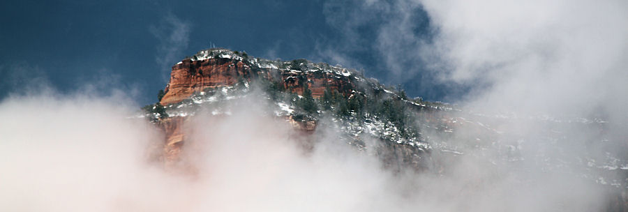 Nach gut 1,5 Stunden ist unsere Behausung weitgehend trocken und wir verpacken alles, so dass wir gegen 8Uhr vom Campground rollen. Unser heutiges Ziel ist der Zion N.P. Ursprünglich hatten wir uns das als verdiente Belohnung unserer Buckskin Gulch-Tour vorgenommen, auf die wir ja wegen des Wetters verzichtet haben. Seit Jahren schon wünscht sich Anita, einmal in einer der Cabins der Zion Lodge zu übernachten, die jedoch in der Regel über viele Monate im voraus ausgebucht sind. Doch diesmal hatte es zufällig geklappt und so möchten wir jetzt ungern auf diese Übernachtung verzichten, auch wenn wir unsere Tour verändert haben. In Hurrican frühstücken wir auf die Schnelle beim Mc.Donald`s, bevor es weiter zum Zion geht, den wir gegen Mittag erreichen. Dicke Nebel- und Regenschwaden umspielen noch die Zinnen der Gebirgszüge, beginnen sich aber durch die brennende Sonne langsam aufzulösen.