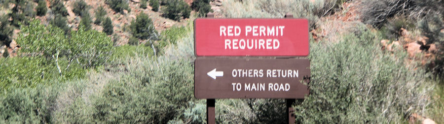 Der Zion Canyon Drive ist bis auf wenige Monate im Winter für den öffentlichen Verkehr gesperrt. Da die Zion Lodge jedoch genau an diesem Drive liegt bedarf es der sog. „Red Permit“, die wir im Vorfeld per Post erhalten haben und die wir nun beim Eintritt in den Park vorzeigen müssen. Hier wird uns ausführlich erklärt, dass wir den Drive nur zur Anfahrt und Rückfahrt zur Zion Lodge nutzen dürfen, an welcher Stelle der Windschutzscheibe wir die Permit gut sichtbar fixieren müssen und dass es nicht erlaubt ist, zwischendurch anzuhalten. Ich verkneife mir die Frage, was was wir machen sollen, wenn vor uns ein Wanderer oder ein Deer auftaucht....