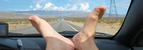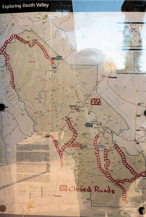 Doch den heutigen Tag werden wir anders gestalten. Nachdem wir mit allen vorbereitenden Arbeiten durch sind und seit gestern einen Mustang haben, der seine Pferdestärken eher auf dem Highway als auf dem Strip spielen lassen sollte, werden wir einen Ausflug machen. Noch einmal ins Death Valley, einfach so, ohne bestimmtes Ziel, eben nur so. Und um 7Uhr sind wir dann auch schon auf der Piste. Ein ganz verrückter Gedanke war, am Mittag oder am Abend nochmals in Panamint Spring einen Blue Cheese Burger zu essen, doch von diesem Gedanken rücken wir ab und fahren nur bis Furnace Creek. Auf dem Weg dort hin kommt uns eine Flotte 6 schwarzer Porsche Geländewagen entgegen. Ob es Erlkönige sind oder eine besondere Delegation können wir nicht erkennen. Am Nachmittag geht es dann zurück nach Vegas, beim Walmart kaufen wir doch noch mal ein paar Mitbringsel ein und dann geht es zurück zum Hotel, wo wir beim Denny`s essen. Dieser ist praktischerweise direkt neben unserem Hotel. Anschließend toben wir uns im Pool aus, fast alleine. Die Anlage scheint überhaupt nicht ausgelastet zu sein oder alle Gäste haben besseres zu tun, als am Pool zu liegen. Wir cruisen gegen