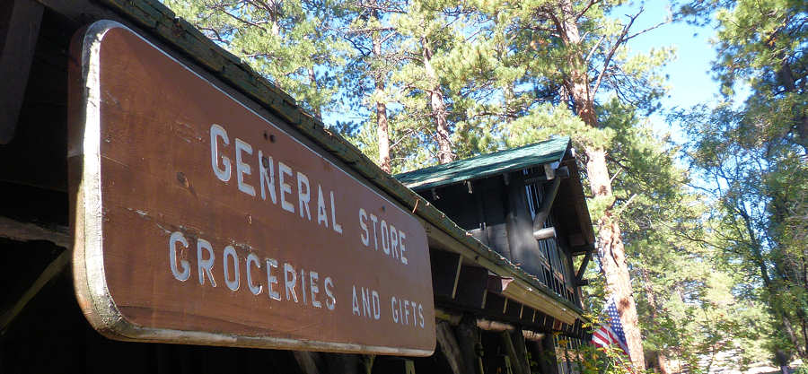 Die weiteren, und vermutlich interessantesten View Points, z.B. der Cape Royal, bleibt und verwehrt, da die Zufahrt ab der sog. "Y-Junction" gesperrt ist. Etwas Frustration kommt auf. Die nächste Station ist der Generalstore am Campground und hier regnet es richtig. Ich mache einen kurzen Videoclip und schicke ihn u.a. an Marco, der sich an den Platz auf der Terrasse sicherlich gut erinnern kann. Denn hier haben wir damals am Abend vor unserer ersten RIM2RIM-Tour das letzte Essen eingenommen, heißgemacht in der Microwave. Wir stöbern etwas im Internet und fahren dann zum Hotel in der Hoffnung, schon verfrüht einchecken zu können. Das ist gar kein Problem und man weist uns die Cabin 133/137 zu.