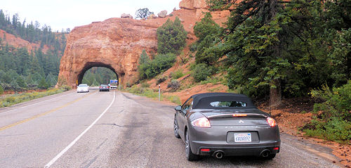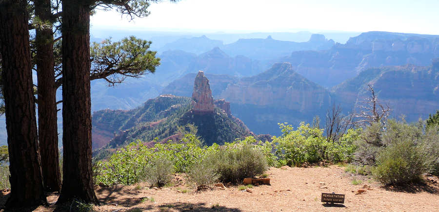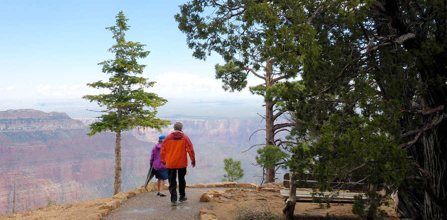 15. September 2013: In Kanab halten wir mal wieder beim Mc. Donald`s um den Reisebericht hochzuspielen und Anita bucht online ein Zimmer im Best Western in Mesquite, wo wir vor paar Tagen bereits waren. Je näher wir dem North Rim des Grand Canyons kommen desto mehr Wolken ziehen auf. Das widerspricht völlig der Wetterprognose. Unser erster Weg im Grand Canyon, den wir gegen Mittag erreichen, ist er Imperial Point. Wir verlassen den Wagen nur für wenige Minuten, denn es regnet.