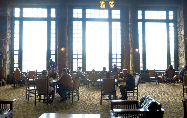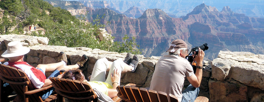16. September 2013: Wir erwachen irgendwann zwischen 6 und 7 Uhr ohne Wecker in unserer Cabin und lassen es gemütlich angehen. Nach der üblichen Morgenroutine checken wir aus und laufen noch ein wenig am Rim entlang um uns, nunmehr in ruhigerer Atmosphäre, auf der Terrasse der Lodge niederzulassen.