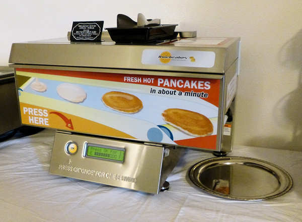 Ein Knopfdruck und innerhalb einer Minute kommt unten ein frisch gebackener Pancake raus. Leider schafft Anita nur einen zu essen, wir hätten sonst vermutlich eine Stunde lang gedrückt, geschaut, gestaunt und wieder von vorn angefangen. Wir
