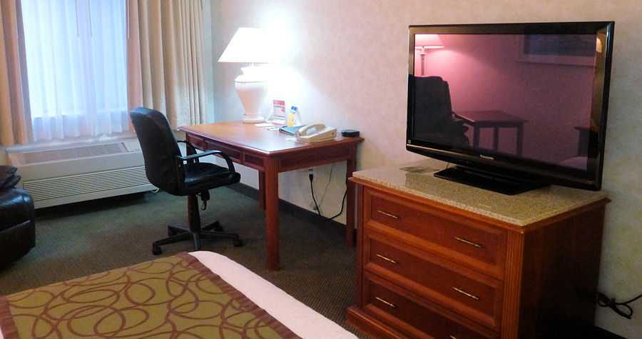 Anschlussflügen wären wir vermutlich arg nervös geworden. Die A320, in der wir jetzt sitzen, ist deutlich enger bestuhlt. Da sie ausgebucht ist bleibt auch der dritte Stuhl in unserer Reihe nicht leer. Anita und ich schlafen zwar auf diesem Flug immer mal wieder ein paar Minuten, aber recht gequält. Obwohl wir beide keine Riesen sind fällt es uns schwer, die Beine und Köpfe so zu sortieren, dass alles passt und man gut einnicken kann. Gegen 20Uhr erreichen wir Las Vegas. Das Meer von Lichtern unter uns lässt wohl keinen Passagier unbeeindruckt: Es ist kein Sterbenswörtchen zu hören. Alle schauen, soweit es ihre Plätze zulassen, sprachlos und beeindruckt aus den Fenstern. Auf dem Boden der Realität angekommen geht es zum Car Rental Shuttle. Was wir noch nie erlebt haben: Man merkt das verlängerte Wochenende (am Montag ist Labor Day) und ganz Amerika strömt offensichtlich nach Vegas. An der Car Rental Shuttle Station (was für ein Wort) hat sich eine Schlange gebildet und eine Mitarbeiterin weist jeden Ankommenden, sich in die parallel laufenden Schlangen für Shuttle 1 oder Shuttle 2 einzureihen. Nach 10 Minuten Fahrt stehen wir am Hertz-Schalter. Auch hier erleben wir völlig Neues: Der Mitarbeiter druckt in wenigen Sekunden unsere Papiere aus. Erstmalig wird nicht versucht, uns zusätzliche und teilweise auch nicht notwendige Versicherungen anzudrehen. Man versucht uns auch kein Navi zu vermieten und die Tankfüllung zu verkaufen. Letztgenanntes nehmen wir immer ganz gerne in Anspruch, weil es uns das Wiederbetanken am letzten Tag erspart. Das ganze Prozedere verläuft so schnell, dass wir erst jetzt nach einem Upgrade fragen können. Der von uns erhoffte Camaro steht nicht zu Verfügung, zumindest nicht als Cabrio. Das verlängerte Wochenende wirft seine Schatten voraus und so ist die verfügbare Wagenflotte wohl ein gutes Stück abgeschmolzen. Als Offenen könnten wir einen Mustang haben, rund $20 mehr. Pro Tag, wohlgemerkt. Das ist uns der Spaß nicht Wert zumal wir bereits einmal einen Mitsubishi Spyder hatten und den, von der Größe mal abgesehen, ganz okay fanden. Wir verlassen den Verleiher also mit einem von der Farbe her potthässlichen, dunkelbraunen Wagen. Dass unser Spyder tatsächlich nicht braun sondern bronze ist und bei Tageslicht sogar ganz pfiffig aussieht, werden wir erst morgen früh feststellen. Ursprünglich hatten wir in Erwägung gezogen, noch beim Walmart die üblichen Artikel zu erwerben: Getränke für den ersten Tag und Batterien. Doch wir sind beide ziemlich müde und so halten wir nur kurz an "unserem" Mc Donald`s gegenüber vom Mandalay Bay zu einem Snack um dann wieder Fahrt aufzunehmen in Richtung Best Western Mc.Carran Inn. Und auch hier erleben wir etwas für uns völlig Neues: Es gibt keinen freien Parkplatz am Hotel. Wir waren ja nun schon zig mal hier aber dass wir nach einem Parkplatz suchen mussten ist neu. Zwei Mal umkreisen wir den Gebäudekomplex und finden tatsächlich einen(!) freien Platz. Und auch unser Zimmer ist völlig neu für uns: Obwohl wir das Standardzimmer reserviert hatten erhalten wir ein deutlich größeres, das als Suite bezeichnet wird. Nun aber wird nur noch etwas hin- und hergeräumt und dann geht es schon bald ins Bett. Mittlerweile ist es Mitternacht und unser Wecker steht auf 5 Uhr. Also müssen wir uns mit dem Schlafen etwas beeilen ;-) Gute Nacht !!!