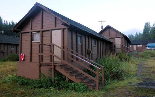 Park über viele Monate hinaus komplett ausgebucht. Also nehmen wir mit der Cabin Vorlieb, die wir gegen Abend erreichen. Denn den Yellowstone zu betreten heißt nicht unbedingt,auch gleich da zu sein. Der Park ist riesig und zwischen dem Westeingang und unserer Cabin bei der Lake Lodge liegen nochmals 50 Meilen. Nach dem Einchecken weist man uns unser "Häuschen" zu, in dem wir nun vier Nächte wohnen werden. Im Internet haben wir uns über unseren Cabin-Typ informiert und die ganze Spannweite aller möglichen Bewertungen lesen können, von "Zweckmäßig und okay" bis hin zu "katastrophal. Wir rechnen also schon (fast) mit dem Schlimmsten und halten mit dem Wagen direkt vor der Cabin C7. Wir betrachten die Cabin, zu der eine kleine Treppe führt, von außen und von innen und denken nur: Wir sind da ! In