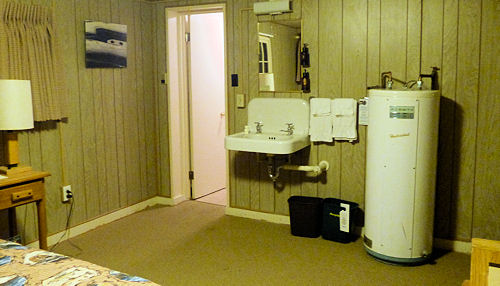 Aber im Ernst: Natürlich entspricht die Ausstattung nicht annähernd dem heut üblichen Standard aber wir wussten ja, auf was wir uns einlassen. Und lieber in der historischen und überhitzten Cabin als im Hi-Tec-Zelt bei bibbernder Kälte mit einem kuschelfreudigen Schwarzbären. Und eigentlich ist es besser als gedacht, im Detail sogar etwas nett (Die Seife ist in Form eines netten Bärens) und insgesamt doch urig. Das Bett erweist sich als breit genug und nicht allzu durchgelegen, die Anzahl der Steckdosen für unser Equipment ist ausreichend und die Hütte lässt sich ebenso gut heizen wie kühlen. Die Dusche funktioniert auch und beim zweiten Mal gelingt es sogar, sich ohne Verbrühung oder Vereisung zu duschen. Also alles insgesamt gar nicht mal so schlecht. Und letztlich halten wir uns auch nur für einige Stunden zum Schlafen auf.