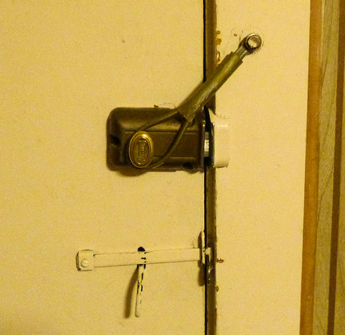 als erwartet. Die Klimaanlage besteht aus einem Plastikventilator, dafür scheint er aber zu funktionieren. Wir wissen zwar noch nicht, an welche Steckdose wir ihn anschließen können aber dafür hat er ein langes Kabel. Eine Kaffeemaschine gibt es nicht, dafür fehlt auch der Fernseher und als Ausgleich gibt es hier im Zimmer auch kein Telefon. Aber wir haben ein Bad, das sich aufteilt zwischen der Dusche in der Toilette und dem Waschbecken im Wohnraum. Nicht zu vergessen der riesige Behälter im Wohnraum, den ich erst nah genauer Untersuchung als Boiler für das Heißwasser identifiziere. Immerhin, wir haben heißes Wasser. Wir haben sogar ein Bett, das allerdings der von uns gebuchten Kategorie "Doppelbett" irgendwie nicht gerecht werden will. Es hat eine geschätzte Breite, die irgendwo zwischen Einzel- und "fast wie ein Doppelbett" liegen müsste. Und dann ist da auch noch die Tür, deren Schloss-Mechanismus aus einer Drahtschlinge besteht und vermutlich eher symbolisch für eine Einbruchsicherung stehen soll. Immerhin, wir haben eine Tür !
