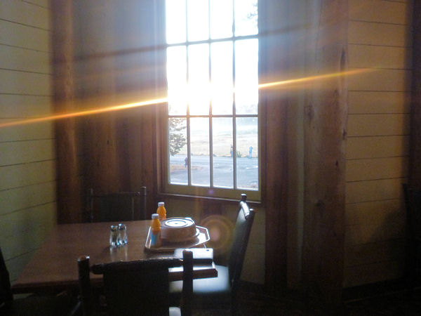Beim Visitor Center holen wir den üblichen Stempel ab, frühstücken bei einer Tasse Kaffee und einer halben Bearclaw auf der Terrasse des General Stores und nichts erinnert an das verregnete Wetter von gestern.