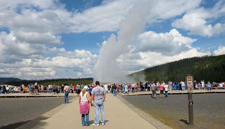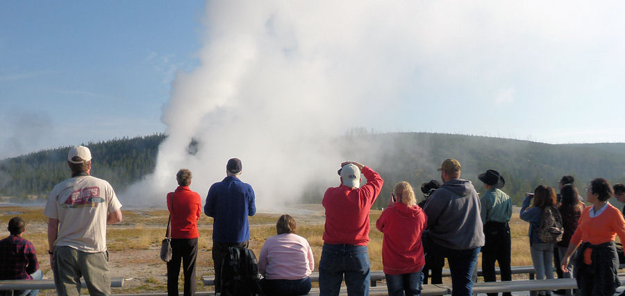 Erneute Eruption der Old Faithfuls unter den Augen der Old Faithfuls mit