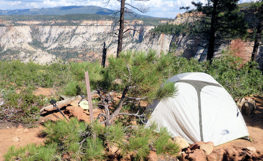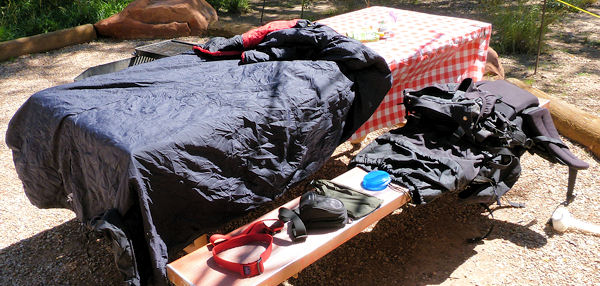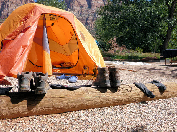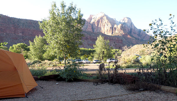 Nach der Pflege des Equipments und auch uns selbst geht es wieder mit dem Shuttle zur Zion Lodge, wo wir traditionsgemäß unter dem großen Baum auf der noch größeren Wiese relaxen und zu Mittag essen. (Pommes !) Die Shuttlerund führen wir fort, in dem wir eine große Runde drehen bis wir wieder am Visitor Center rausgelassen werden und zur Campsite gehen. Mit dem Auto machen wir nochmals eine Spritztour nach Springdale um bei Sol Food noch einzukaufen. U.a. haben wir dort einen leichteren Zelthammer gesehen, der uns nun zukünftig auf en Trekkingtouren begleiten wird. Zurück auf der Campsite lassen wir den Tag in Ruhe ausklingen und freuen uns nunmehr auf ein Zeltlager auf Kies, denn das ist der Untergrund auf den Tent-Pads auf diesem Campground und auf jeden Fall angenehmer als die gestrige Nacht auf gehärtetem Sand. Also dann, gute Nacht ! |