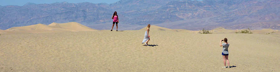 10. + 11.5.2015: Die beiden Tage laufen sehr ähnlich ab. Gegen 8Uhr fahren wir "vom Hof", cruisen quer durchs Death Valley, machen hier und da wieder Fotos und Clips für die spätere Show, machen einen Pool-Stop am Motel (diesmal gehen wir auch ins Wasser), fahren zum Abendessen nach Panamint, wieder zurück zu den Dünen, wieder an den Pool usw. Und so vergehen die zwei Tage wie im Fluge. Einige Besonderheiten, die es zu erwähnen gilt: 1.) Am ersten Tag spiele ich für eine Aufnahme einen Stunt, in dem ich mich von einer Düne runterrollen lasse. Leider bin ich falsch aufgekommen, seither schmerzt die Rippe. ![]() 2.) Am zweiten Tag, wir waren gerade von Badwater zurück und nach Beatty gefahren, fällt auf, dass ich meine Kamera in Furnace Creek (etwa eine knappe Stunde entfernt) stehen gelassen habe. Also wieder zurück nach Furnace Creek. Das Glück, zurückgeleassene Fotoapparate stets zurückzubekommen, bleibt mir zum vierten Male in über 20 Jahren hold: Ein ehrlicher Finder (ihm ein sehr herzliches Danke, leider kenne ich ihn nicht!) hat sie an der Registration abgegeben. 3.) Am zweiten Abend wurden wir in Panamint von einer alten Bekannten bedient. Im Gegensatz zu sonst war sie sehr reserviert, hat kein Getränk nachgeschenkt und war so kurz angebunden, dass wir kurz davor standen, Panamint den Rücken zu kehren. Das haben wir nach langer Überlegung und dem Gedanken an einen Bluecheese-Burger dann doch nicht gemacht. Wieder wurden wir von der Serviererin des Vortages bedient und diesmal lief alles, von A bis Z, optimal. Da hat das Restaurant und mein Magen noch einmal Glück gehabt. 4.) An allen drei Tagen kamen wir am Emigrant Campground vorbei. Das ist ein etwas unschöner, weil sehr einfacher Campground, direkt neben der 190. Jedesmal fiel uns ein Wagen mit geöffneten Türen auf, in dem jemand saß. Am ersten Tag haben wir ihn kaum registriert. Am zweiten Tag steuerten wir den Campgound an, weil wir dort unser Zelt trocknen wollten und wieder stießen wir auf den erwähnten Wagen. Wir erstarrten zu Steinsäulen, weil wir im ersten Moment glaubten, der Mann lege leblos in seinem Wagen. Erst als wir auf ihn zugingen bewegte er sich und grüßte freundlich. Auch am letzten Tag sahen wir ihn wieder und wir wissen leider überhaupt nicht, was er dort macht. Wir haben schon mal an eine Fahrzeugzählung gedacht, sind uns aber völlig unsicher. 5.) Die Tage zeichneten sich dadurch aus, dass wir auch unser Equipment gepflegt haben, insbesondere das Trekking-Equipment...........:-) So, und nun "Gute Nacht", denn morgen geht es schon zurück nach Vegas! |