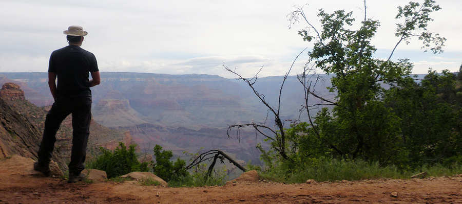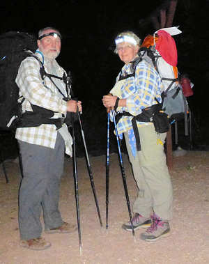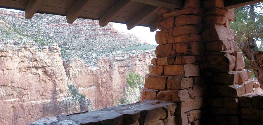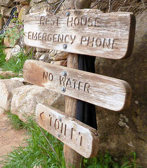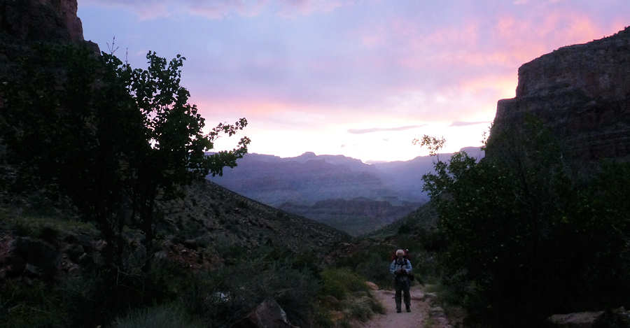 06.05.2015: Um 4 Uhr lassen wir uns wecken und beginnen gleich mit dem Abbau des Zeltes und dem Verstauen des Equipments in den Backpacks. Im Moment ist unsere Campsite die einzige, auf der Leben zu hören ist, wobei wir uns allerdings im höchsten Maße bemühen, möglichst leise zu sein, um die anderen nicht zu stören. Aber außer einem lauten Schnarchen aus einem der Zelte hört man noch nichts. Aber irgendwie haben wir uns mit der Uhrzeit vertan. Obwohl der Sonnenaufgang erst für 5:30Uhr angesagt ist, beginnt das Firmament bereits zu erleuchten. Bei dieser Helligkeit waren wir sonst schon etwa 1,5 Meilen weiter am 3-Mile-Resthouse. Wir können uns gut an die Bilder von uns am 3-Mile-Resthouse erinnern, wo der Himmel gerade erst beginnt leicht zu erleuchten. Offensichtlich sind wir sonst doch noch eine Stunde früher aufgestanden. Nach 45 Minuten stehen wir abmarschbereit auf unserer Campsite und starten mit dem Hike. ![]() Mittlerweile ist gut zu erkennen, dass der Himmel sehr bewölkt ist, was den Aufstieg hoffentlich "gnädig stimmt", denn der Bright Angel Trail im knallen Sonnenlicht macht keinen Spaß - nur Qualen. ![]() Die Kondition stimmt ...... leider nicht. Denn schon nach der Hälfte des ersten Sektion zum 3-Mile-Resthouse haben wir beide die Nase voll. Normalerweise geht gerade dieser Part noch recht einfach, weil der Trail zwar kontinuierlich anteigt, aber über eine längere Strecke sehr gemäßigt. So stoppen wir immer wieder mal zwischendurch, schimpfen über den Trail und fragen uns, wer uns das eingebrockt hat. Schimpfend und fluchend wie ein "HB-Männchen" (würde mich interessieren, wer das noch kennt) erreichen wir das 3-Mile-Resthaus. Na ja, ganz so schlimm fluchen wir zwar nicht, aber wir sind doch recht erschöpft. Obwohl wir gefühlt mehr Pausen als sonst eingelegt haben, ist unsere Zeit mit 1Stunde und 10 Minuten nur 10 Minuten länger als sonst, und das, obwohl es ziemlich mild hier unten ist. Wir treffen hier die ersten Hiker. Während wir sonst oft die Rucksäcke erst gar nicht ablegen und nach einer kurzen Pause weitergehen, haben wir uns diesmal sogar im 3-Mile-Resthouse mal hingesetzt. ![]() Allerdings zieht es hier dermaßen, dass wir uns für die paar Minuten in eine Ecke zwängen müssen, um nicht sofort auszukühlen. Nach 10 Minuten geht es dann doch weiter. Auch der zweite Abschnitt vom 3-Mile-Resthouse zum 1,5-Mile-Resthouse gestaltet sich ähnlich: Gehen, stoppen, gehen usw. Anita ruft einige Meter unter mir: "Ich komme mir vor wie die Oma aus Hengasch" mit Anspielung auf die Serie "Mord mit Aussicht", in der als running Gang mehrmals pro Staffel eine ältere Dame mit ihrem Rolator durchs Bild läuft. Unser Entschluss, mit dem Trekken aufzuhören, bestätigt sich