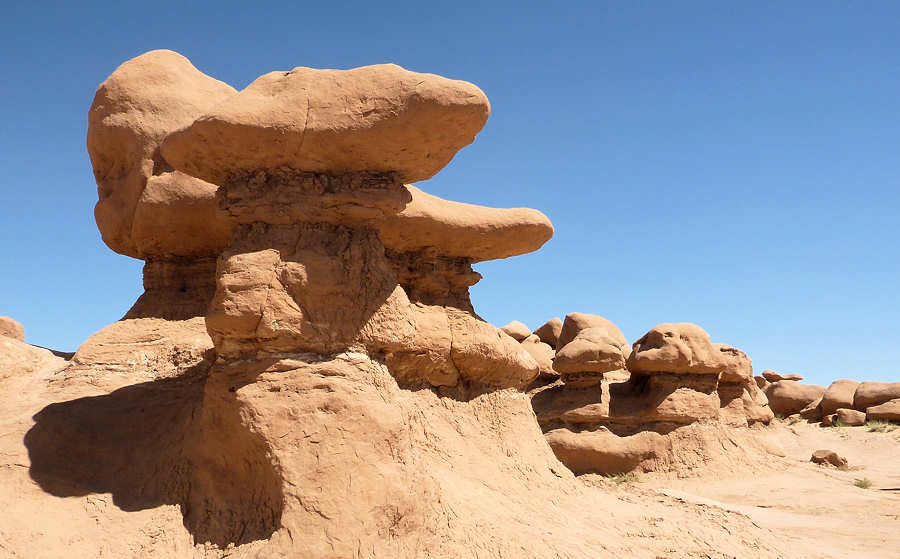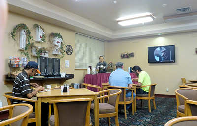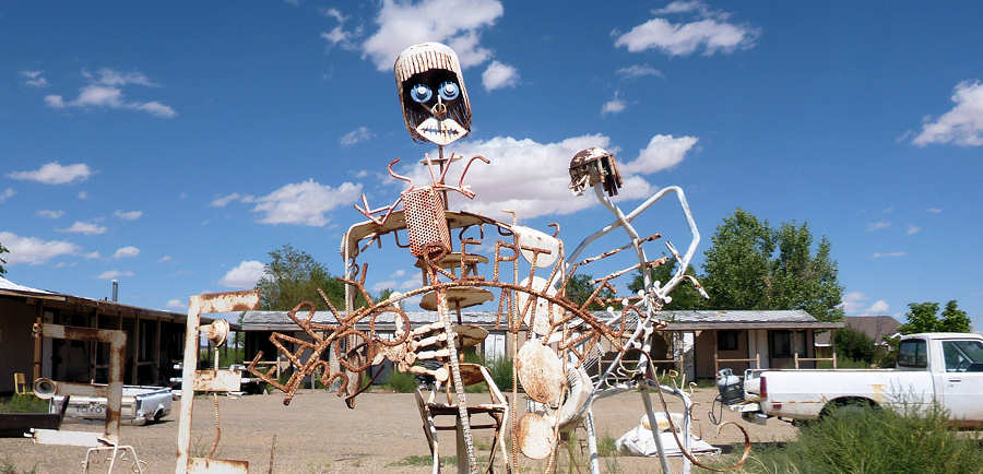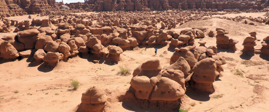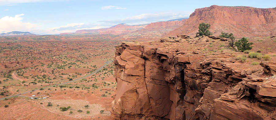 6.September 2015: Das Bett ist eine Wucht und groß genug, so dass niemand von uns Gefahr laufen musste, rauszufallen. ![]() Im Zimmerpreis ist das Frühstück enthalten und es gibt Pancakes und die essen wir eher seltener. Das sind Pfannkuchen und die Amerikaner essen sie wohl häufig, und dann mit viel Butter bestrichen und darüber ein Meer von Ahornsirup. In der Tat: Der Ahornsirup ist zuckersüß und wenn wie beim Frühstück Amerikaner beobachten, wie sie die Pfannkuchen im Ahornsirup absaufen lassen fangen bei und automatisch die Zähne an zuzukleben. Nach dem Frühstück fahren wir in Richtung Goblin Valley los und staunen über die Außen-Temperaturanzeige unseres Wagens: 26Grad Fahrenheit werden angezeigt und beim Raushalten der Nasen stellen wir fest, dass sie nicht lügt: -3Grad Celsius sind das! ![]() Der wolkenlose Himmel hat vermutlich in der Nacht so ausgekühlt. ![]() Goblin Valley hat sich leicht verändert. Nicht nur wegen natürlicher Veränderungen, die zwangsläufig durch Wind, Wasser und Schnee, die an den Gesteinen knabbern, verursacht werden. Und nicht nur durch angebliche Pfadfindern, die sich im letzten Jahr einen Spaß daraus gemacht haben, eine dieser Skulpturen umzustürzen und dann auch noch so clever waren, das zu Filmen und ins Internet zu setzen. Auch die Campsites wurden renoviert und erweitert, zumindest seit unserem letzten Besuch, der aber auch "erst" 12 Jahre her ist. ![]() ![]() Mittlerweile sind einige Wolken über uns, bremsen die Brennkraft der Sonne aber nur gering. Wir spazieren für einige Fotos in 3D zwischen den Skulpturen durch. Für die halbe Stunde haben wir uns das Wasser einfach mal gespart aber wir merken sehr schnell, dass man bei den Temperaturen auch ohne körperliche Anstrengung viel Wasser verliert und unsere Kehlen lechzen nach den Getränken im Auto. Das geplante Kurzpicknick auf dem oberen Plateau schenken wir uns, da es aufgrund des großen Andrangs recht turbulent und laut zugeht. Also fahren wir weiter in Richtung Capitol Reef und planen an der nächsten möglichen Picknick-Area mal eine Kleinigkeit zu essen, denn unser Frühstück war um 6Uhr. Dabei durchstreifen wir Hanksville, wo wir an einer Autowerkstatt interessante Metallskulpturen entdecken können. ![]() ![]() Aber erst kurz vor dem Eingang zum Capitol Reef N.P. entdecken wir eine nette und abgelegene Parkmöglichkeit. Aufgrund der vorangeschrittenen Zeit und dem Wunsch, heute Abend im Rim Rock Inn Restaurant essen zu gehen fällt das Picknick sehr spartanisch aus. Unser erster Besuch gilt dem Visitor Center im Nationalpark. Während Anita ihren Pass abstempeln lässt studiere ich den Wetterbericht, der uns optimistisch in die nächsten Tage blicken lässt: Sunny und nur selten mal ein paar Wolken. Die Ranger wollen zu unserer Überraschung noch nicht einmal unseren Anual Park Pass sehen, d.h. man könnte hier ohne Eintrittsgebühr den Park durchqueren. Wir erkundigen uns nach dem für morgen geplanten Hike zum Chimney Rock, den wir vor fast 20 Jahren in den Anfangszeiten unserer Wanderleidenschaft gelaufen sind und der uns in guter, wenn auch nicht ganz unanstrengenden Erinnerung haften geblieben ist. Der Trail ist geöffnet und so steht die Planung für morgen fest. Gegen 15:30Uhr checken wir im Broken Spur Inn ein. Eigentlich wollten wir wieder drei Nächte ins Rim Rock Inn, das wir im Frühjahr nach langjähriger Abstinenz wieder besucht haben und das uns gut gefällt. Vermutlich wegen des Labour Weekends können wir dort erst am morgen ein Zimmer bekommen, so dass wir heute alternativ hier nächtigen werden. Und es gefällt uns gut: Die Zimmer sind sehr groß, wieder ein ordentliches Bett, ein kleines Hallenbad und auch sonst alle Annehmlichkeiten. Endlich nutzen wir dieses Mal auch den Pool, wenn auch nur für ein paar schnelle Bahnen. Erfrischend ist er auf jeden Fall. ![]() Von hier aus fahren wir gegen 5 Uhr zum Rim Rock Inn Restaurant, dessen Bluecheese-Burger uns -besser mich! - wie einen Magneten anzieht. Wir betreten 5 Minuten nach 5Uhr das Restaurant und erhalten einen Fensterplatz mit gewohnt herrlichem Blick auf die Cliffs. Schätzungsweise 10 bis 15 Minuten später ist der Laden voll und ich kann keinen freien Platz mehr entdecken. Dieses Wochenende hat wohl doch viele Amerikaner in die Natur gezogen. Wer sich an den letzten Bericht von uns erinnert hat vielleicht noch im Kopf, dass Anita einen nicht endend wollenden Salat gegessen hat, von dem wir annahmen, dass er wohl von unten nachwächst während man ihn von oben abträgt. Das ist auch heute wieder in etwa. Nach dem vorzüglichen Mahl geht es zurück in unser Broken Spur Inn und dann auch schon bald ins Bett. Gute Nacht, bis morgen ! |