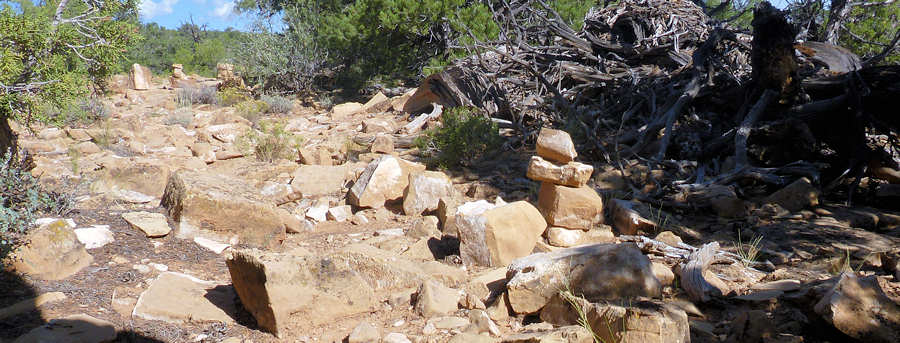 Aber davon einmal abgesehen ist der Trail prima. Zugute kommt uns wieder das Wetter, wobei sich sonnige und stark aufheizende Abschnitte mit angenehm wolkigen abwechseln. Also alles zusammengenommen: Ein toller Trail.