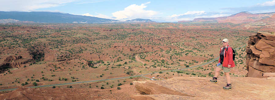 7.September 2015: Viertel nach Sieben sind wir beim Frühstück. Das Wetter sieht nämlich grauenvoll aus: Große dicke Wolken zeichnen sich m langsam erhellenden Firmament ab, so dass wir uns Zeit lassen können. Zum Glück nicht allzu viel, denn beim Betreten des Frühstücksraums ist es noch recht ruhig und kurz hinter uns kommt ein Schwung von Gästen herein und nimmt das für amerikanische Motels sehr abwechslungsreiche Buffet in fester Hand. Eigentlich hatten wir vor, uns im Visitor Center nach der Wettervorhersage für heute zu erkundigen aber mittlerweile haben wir -ich hoffe, wir werden uns niemals irren- es meist recht gut im Griff, das Wetter für den aktuellen Tag aufgrund der Wolkenformation vorherzusagen. Und daher beschließen wir, dass es heute tagsüber trocken bleiben wird, zumindest am Vormittag und frühen Nachmittag. Und deshalb steuern wir sofort den Trailhead zum Chimney Rock an. In den Frühzeiten unserer Wanderaktivität hatten wir schon einmal das Vergnügen miteinander. (1997). ![]() Am Trailhead stehen etwa 3 bis 4 Autos. Nach kurzem Aufschnallen unseres Equipments geht es los. Der Trail wird mit "difficult/strenous" angegeben und hat eine Länge von 3,6 Meilen, also etwa 5,9 Kilometer. Er fordert uns gleich raus, denn er geht recht steil etwa 180Meter nach oben. Oben auf dem Plateau angekommen bietet der Trail einen interessanten Blick ins Tal auf den Highway 24. ![]() ![]() Von hier aus führt der Trail in einer großen Runde sukzessiv wieder nach unten. Uns läuft -von den letzten 500Meter einmal abgesehen- kein anderer Wanderer über den Weg und der Trail ist, wie wir ihn von damals in Erinnerung haben, empfehlenswert. ![]() Nach etwa 2,5 Stunden erreichen wir wieder den Trailhead und damit unser Auto. Der Parkplatz ist mittlerweile etwas voller aber noch nicht überfüllt. Wir hatten den Trail als durchweg schwieriger in Erinnerung. Vielleicht liegt das doch daran, dass wir mittlerweile trotz fortgeschrittenen Alters durch das viele Wandern eine bessere Kondition haben oder aber mal wieder am Wetter. Zwar hat die Sonnen immer wieder man durch die Wolken gestrahlt und den Trail (und uns!) aufgeheizt, aber zusammengenommen hielten die Wolken doch das Schlimmste ab. Der geplante Kurzbesuch im Visitor Center fällt der Tatsache zum Opfer, dass wir keinen freien Parkplatz finden und auch keine Lust haben, eine Viertelstunde wie auf dem Kettenkarussel über den Parkplatz zu kreisen. Also fahren wir auf die "24" , machen hier ein paar Aufnahmen der Wolken, fahren weiter zum Panoramapoint, um auch hier Aufnahmen der vorbeiziehenden Wolken zu machen und letztlich geht es zum Parkplatz des Goosenecks Overlook. Von hier aus gehen wir den etwa eine Drittel Meile langen Trail zum Sunset Point. ![]() Hier genießen wir erst auf den Holzbank und dann in freier Natur auf dem Felsboden für einige Zeit den Ausblick, bevor es dann wieder zurückgeht. ![]() Wir starten einen zweiten Versuch in Richtung Visitor Center und nunmehr hat sich die Parkplatzsituation deutlich entschärft. Die Wettervorhersage prognostiziert für die nächsten Tage nur "sunny" und Temperaturen in den unteren 80ern, also etwa 27 Grad. Allerdings war die gestrige Vorhersage für heute auch "sunny" und von den Wolken am Vormittag stand nichts in dem Aushang. Der Rundgang durch das VC lässt uns auch mal grinsen: ![]() Wir fahren noch eine Runde über den Scenic Drive, denn für morgen planen wir den "Old Wagon Trail", dessen Trailhead hier an der Straße liegen soll. Wir finden ihn auch recht schnell und schauen schon einmal in die Tiefe um zu sehen, wie er denn wohl verlaufen wird. Wir haben mittlerweile 15Uhr und fahren zum Rim Rock Inn um einzuchecken. Leider ist das von uns gewünschte Zimmer nur für eine Nacht frei und stattdessen gibt man uns ein Zimmer zur Vorderseite des Motels. Schade, nach hinten raus ist es ruhiger. Dafür ist unser Zimmer bzw. speziell das Bad aufgrund des Schnitts um ein gutes Stück größer. Wir sind mit dem Zimmer einerseits durchaus zufrieden, im Vergleich zum Zimmer des Vortages schneidet es aber trotz des etwa $15 Preisvorteils schlechter ab. Es ist kleiner, hat keine Kaffeemaschine (den Kaffee gibt es jedoch kostenlos in der Lobby) und das Motel hat keinen Pool. (Wobei Anita richtigerweise ergänzt, dass wir die Pools von Vegas oder Death Valley einmal abgesehen sowieso seltenst nutzen). Was das Restaurant bzw. das Frühstück angeht schneidet hingegen unser "Rim Rock Inn" deutlich besser ab: Man sitzt im Restaurant mit einem unvergleichlichen Blick auf die Tafelberge. Sollten wir mal wieder in diese Gegend gelangen bin ich mal gespannt, für welches der beiden Motels wir uns dann entscheiden werden. Um 5 Uhr geht es dann zum Abendessen ins Restaurant, über dessen Vorzüge ich ja bereits berichtete. Pam bedient uns in einer angenehmen, zuvorkommenden aber auch nicht aufdringlichen Freundlichkeit. Während sich Anita wieder mit einem großen fast von selbst nachwachsenden Salat auseinandersetzt gibt es für mich diesmal ausnahmsweise.......einen Blue Cheeseburger. :-) Sollte ich morgen wieder hierzu greifen, und die Chancen würde ich nicht allzu gering einschätzen, werde ich doch mal fragen, ob es den auch in etwas kleiner gibt. Um ihn zu schaffen verzichte ich schon auf den "Deckel" des Burgers sowie an Dekomaterial. Danach geht es dann vors Zimmer. Kein Tippfehler diesmal! Wirklich "vors" Zimmer, denn wir genießen das Treiben der Zimmernachbarn aber vielmehr die langsam aufkommende Abendstimmung von der Terrasse aus. Und dann wird es doch endlich mal Zeit, ins Bett zu gehen. Wie jeden Abend: Gute Nacht ! |